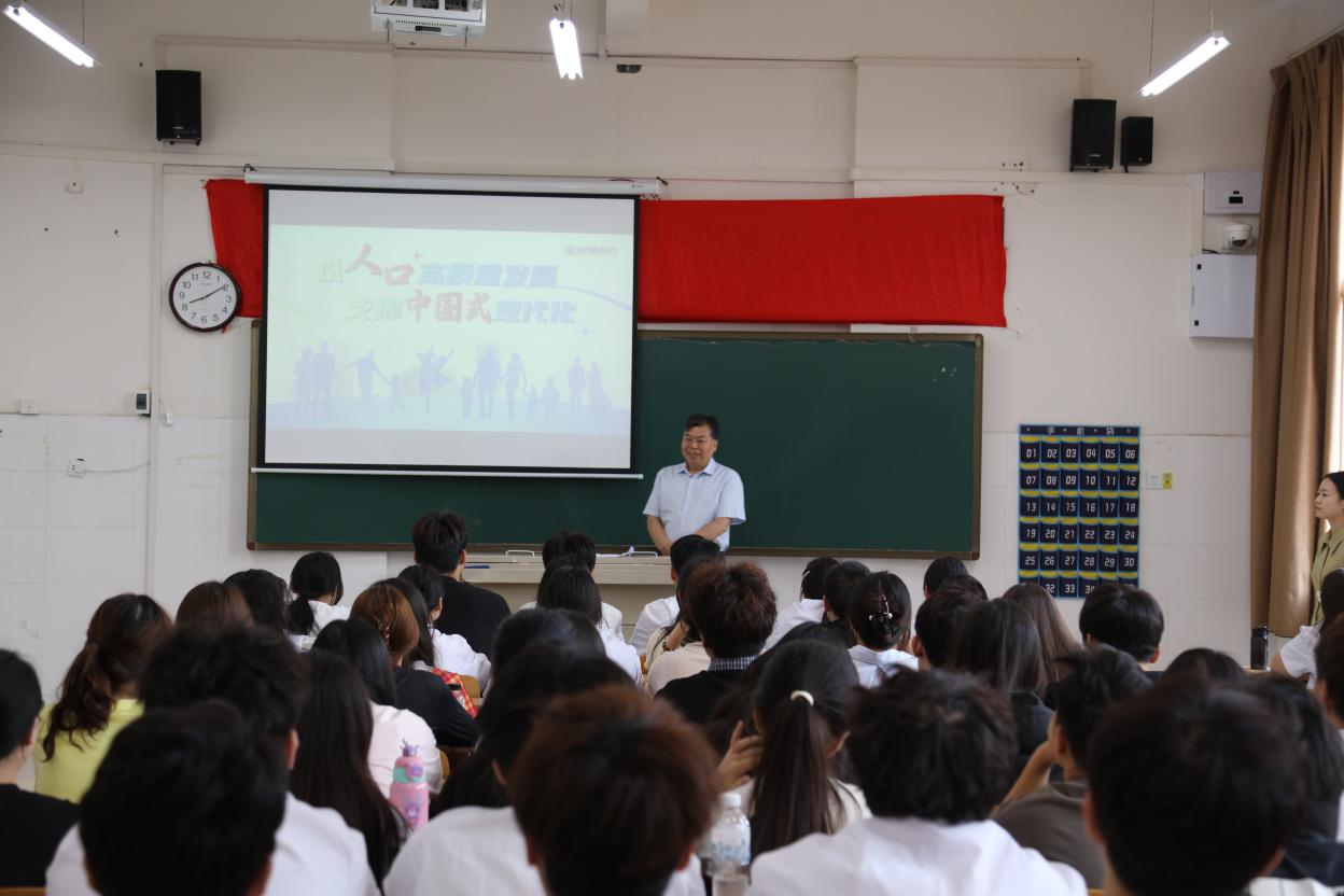 5月28日上午,党委书记蔡太生以“以人口高质量发展支撑中国式现代化”为题,为公司护理学院2024级康复治疗技术专业部分员工讲专题思政课。